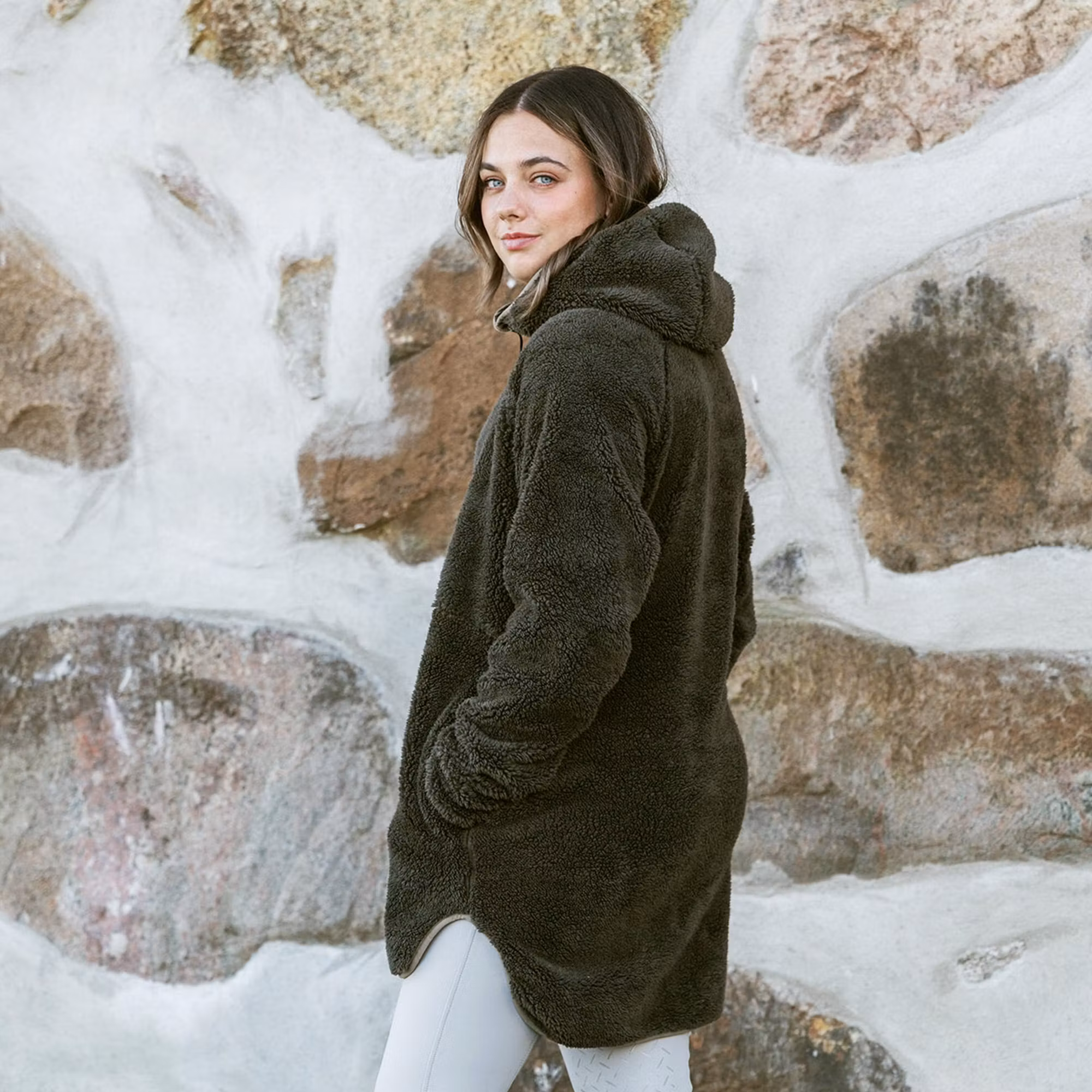 Oversized teddyjacka i extra mjuk och gosig teddyfleece! Den inbyggda värmen i teddyfleece-materialet och microfleece-insidan håller dig varm och gosig, oavsett hur kallt det är i stallet. Den stora huvan på vår teddyjacka är perfekt för att hålla kylan borta. Tvåvägsdragkedjan fram ger dig möjlighet att anpassa ventilationen efter ditt behov. För praktiska ändamål har vi utrustat jackan med fickor både i sidsömmen och en extra ficka med dragkedja fram. Jackan är designad med tanke på både stil och funktionalitet, vilket gör den till ett oumbärligt tillskott till din ridgarderob. 100% Polyester. Maskintvätt i 30 grader.