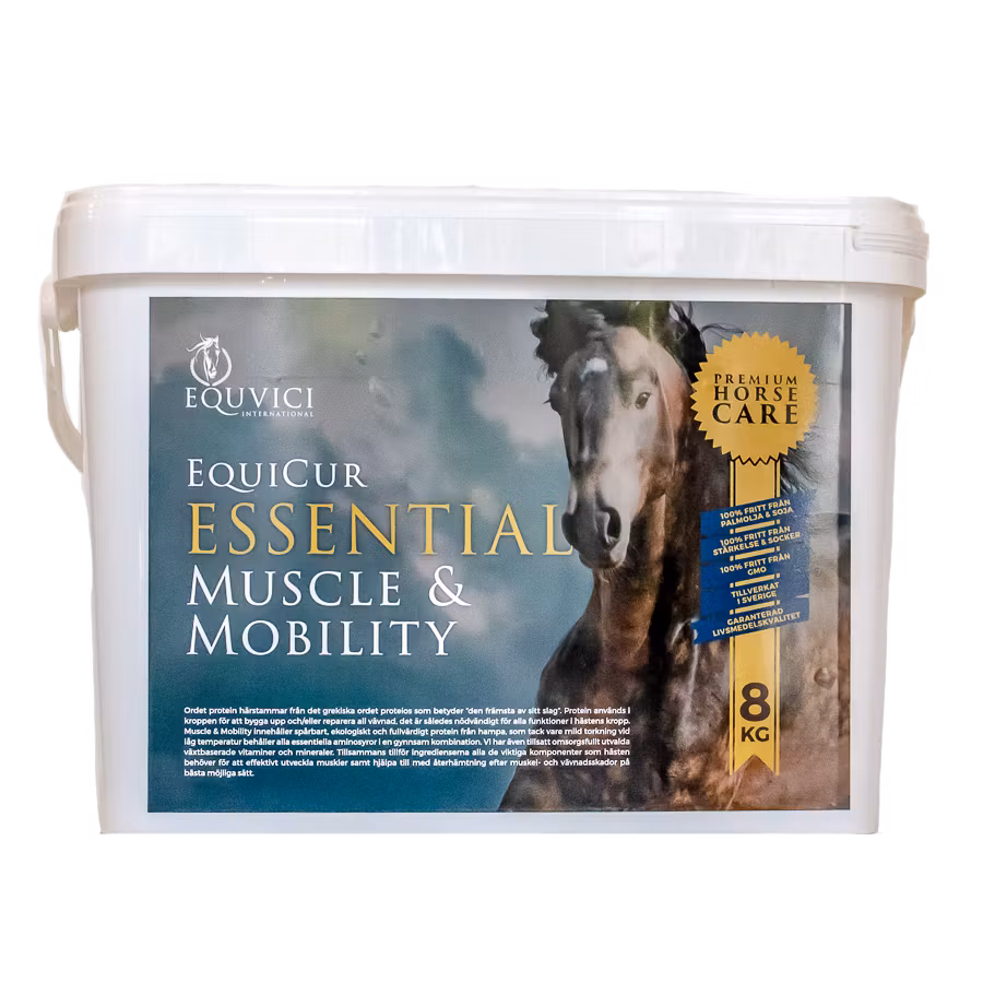 ESSENTIAL Muscle & Mobility är en sammansättning av energi, protein, örter och flera andra hälsofrämjande ingredienser. Ordet protein härstammar från det grekiska ordet proteios som betyder ”den främsta av sitt slag”. Protein används i kroppen för att bygga upp och/eller reparera all vävnad, det är således nödvändigt för alla funktioner i hästens kropp.