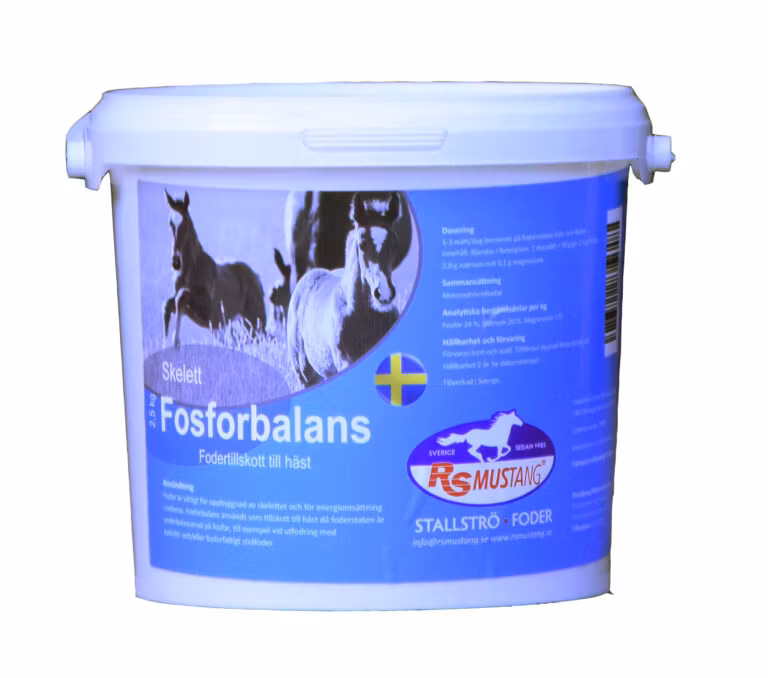 RS Mustang® Fosforbalans används som tillskott till häst när foderstaten har en fosforbrist, exempelvis vid utfodring av kalciumrikt grovfoder. Detta är extra viktigt till hästar med ett högre fosforbehov, så som unga växande hästar, högdräktiga eller digivande ston eller hästar med hög träningsintensitet. Läs mer här: https://rsmustang.se/wp-content/uploads/2024/06/Fosforbalans_webb24.pdf