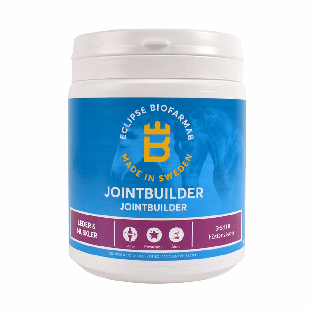 Jointbuilder innehåller högkoncentrerad glukosamin med kollagen, MSM, kondroitinsulfat, hyaluronsyra och inulin. Idealisk för presterande och äldre hästar, samt