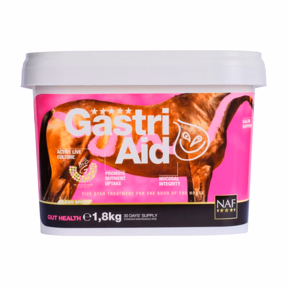 GastriAid innehåller nu även Five Star BioG, framtaget av nutritionsexperterna vid NAF. Five Star BioG är en unik synergistisk kombination av probiotisk levande jästkultur, prebiotika FOS och MOS och nya postbiotiska metaboliter. Den arbetar i synergi med sammansättningarna i GastriAid för att stötta hästens mikrobiom genom hela magtarmkanalen för en optimerad total magtarmhälsa, effektiv matsmältning och allmänt välmående.