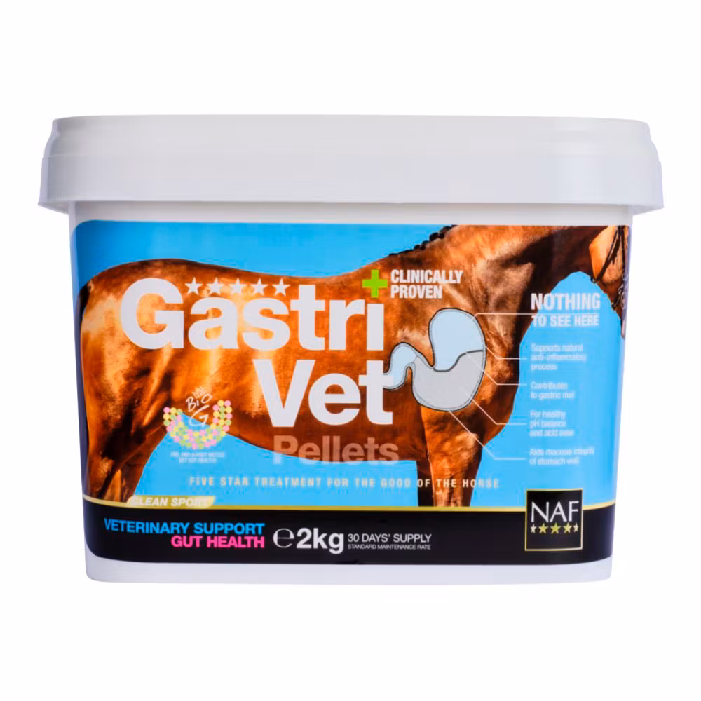 NAF GastriVet hjälper till att skapa en gynnsam miljö i magsäcken, som i sin tur minimerar effekten av nedsatta försvarsmekanismer. För att stödja magslemhinnans styrka och hållbarhet, bidrar GastriVet till att förstärka den viktiga mattan av fiber som hjälper till att begränsa magsyran till den syraproducerande glandulära regionen av magsäcken. Via en kombination av gelbildande ingredienser ges även stöd för det känsliga kutana områdets yta. Levande jästkultur och kraftfull biotika ger stöd och näring till tarmfloran och grovtarmen, för att understödja hästens viktiga fermentering av fiber. NAF Gastrivet har i en omfattande klinisk studie, referensgranskad och publicerad, visat sig optimera magsäckshälsan.