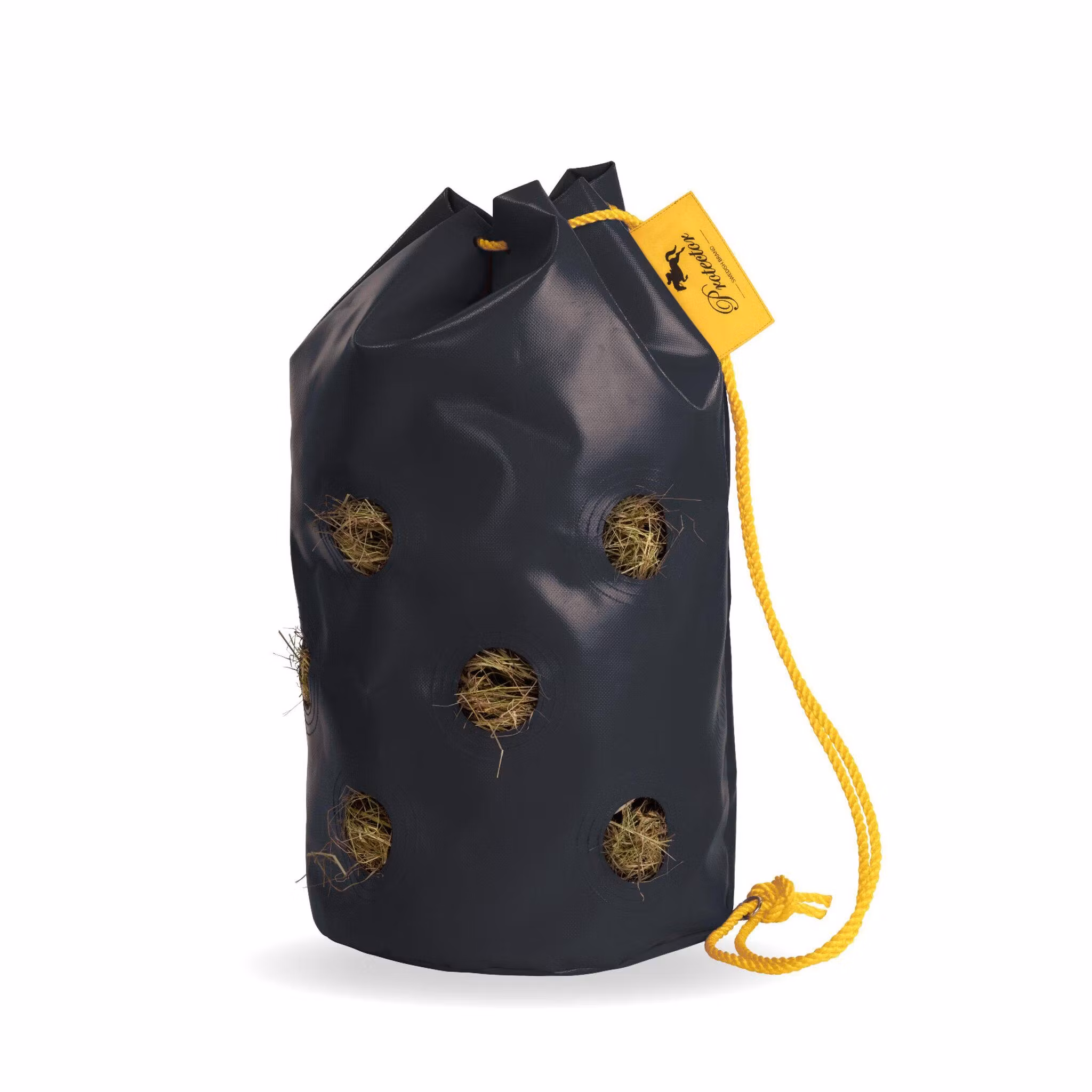 Protector HayFlow Bag C (cylinder) är en genomtänkt höpåse som kombinerar säkerhet, hållbarhet och effektiv utfodring. Den främjar ett långsamt och naturligt ättempo. Tillverkad i slitstarkt och vattenavvisande material som klarar daglig användning. Med ventilerande mindre hål botten som släpper ut damm och fukt – perfekt både för bättre luftcirkulation och för dränering vid blötläggning av hö. Den cylinderformade designen med generös fyllningsvolym gör påsen enkel att packa och hantera. Jämnt fördelade utfodringshål med 8 cm diameter, vilket ger ett kontrollerat flöde av hö och minskar spillet.Protector HayFlow är helt fri från utsatta nät – vilket minimerar risken för att hästen fastnar eller skadar sig. En säker och praktisk lösning för daglig utfodring, som även passar vid resor.Storlek: 80x40 cm diameter, 7-9 kg hö