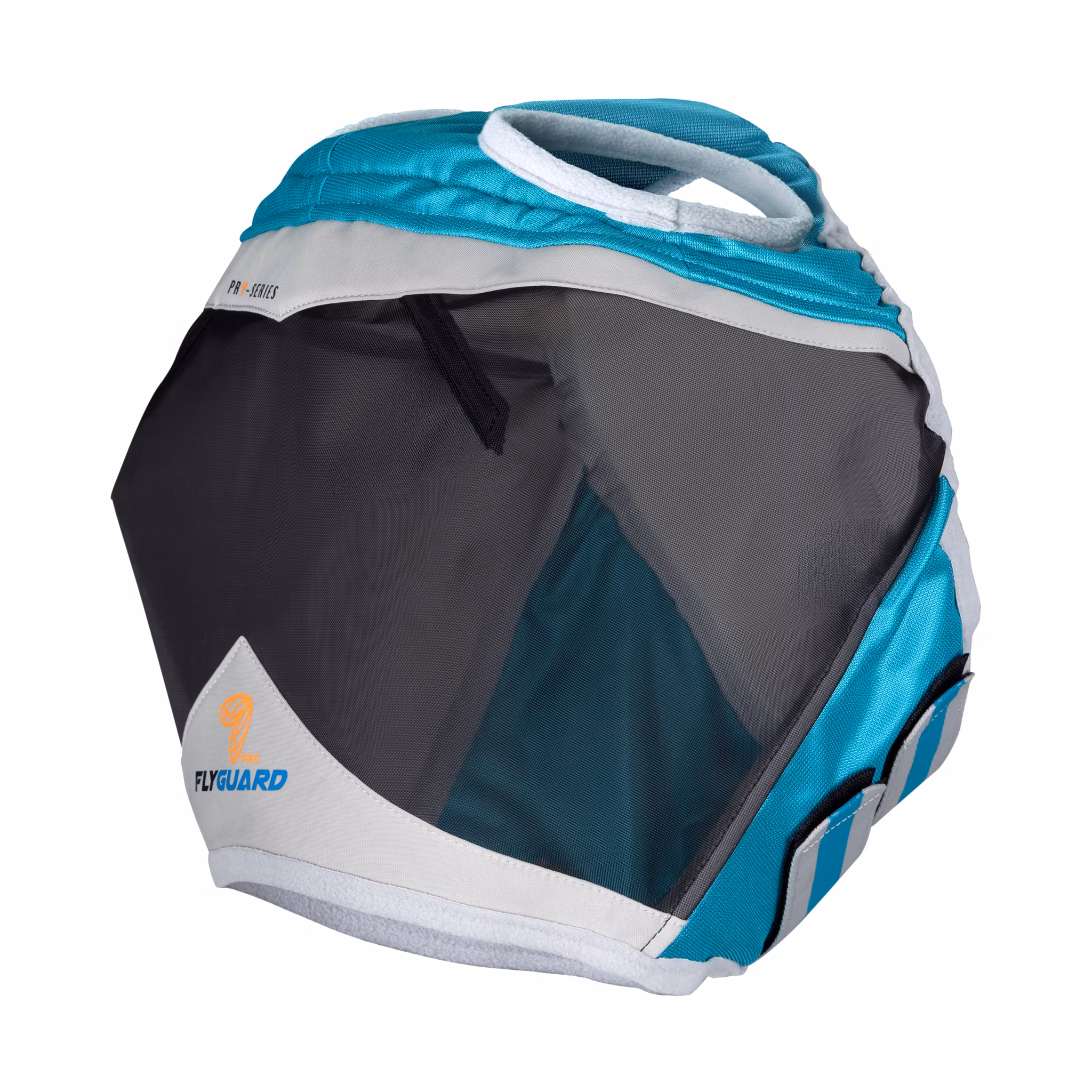 Shires flughuva med hål för öronen. Perfekt passform via elastisk nacke och två knäppen runt ganascherna. Vadderad insida minskar risken för skav. Vecken vid ögonen frigör att materialet kommer i kontakt med hästens ögon. 70+ % UV skydd.