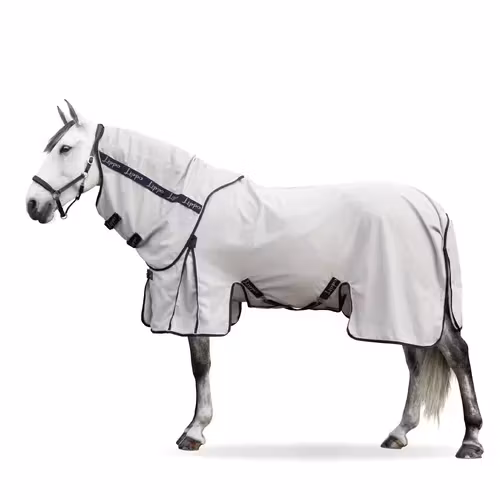 Ett mycket användbart flugtäcke. Extra finmaskig mesh quick dry i 280 gsm som även skyddar mot de minsta insekterna så som knott. Avtagbart halstäcke med nylonfodring mot manen för att undvika skav. Innerfodrat och paddat bogparti för stabilitet samt för att undvika skav. Magplatta, dubbla bogspännen, bogveck, kryssgjordar och avtagbar elastisk inplastad svansrem.