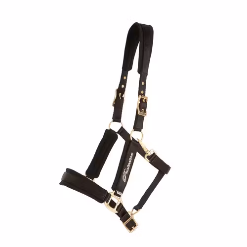 Tillverkad i mjuk polypropylene i klassiska  färger. Nylonfodrad nos, sidostycke och nackstycke. Ställbar i både nacke och nos. Borstade guldfärgade spännen. En lätt grimma som är behaglig för hästen att bära. Storlek: Ponny, cob, full,  x-full