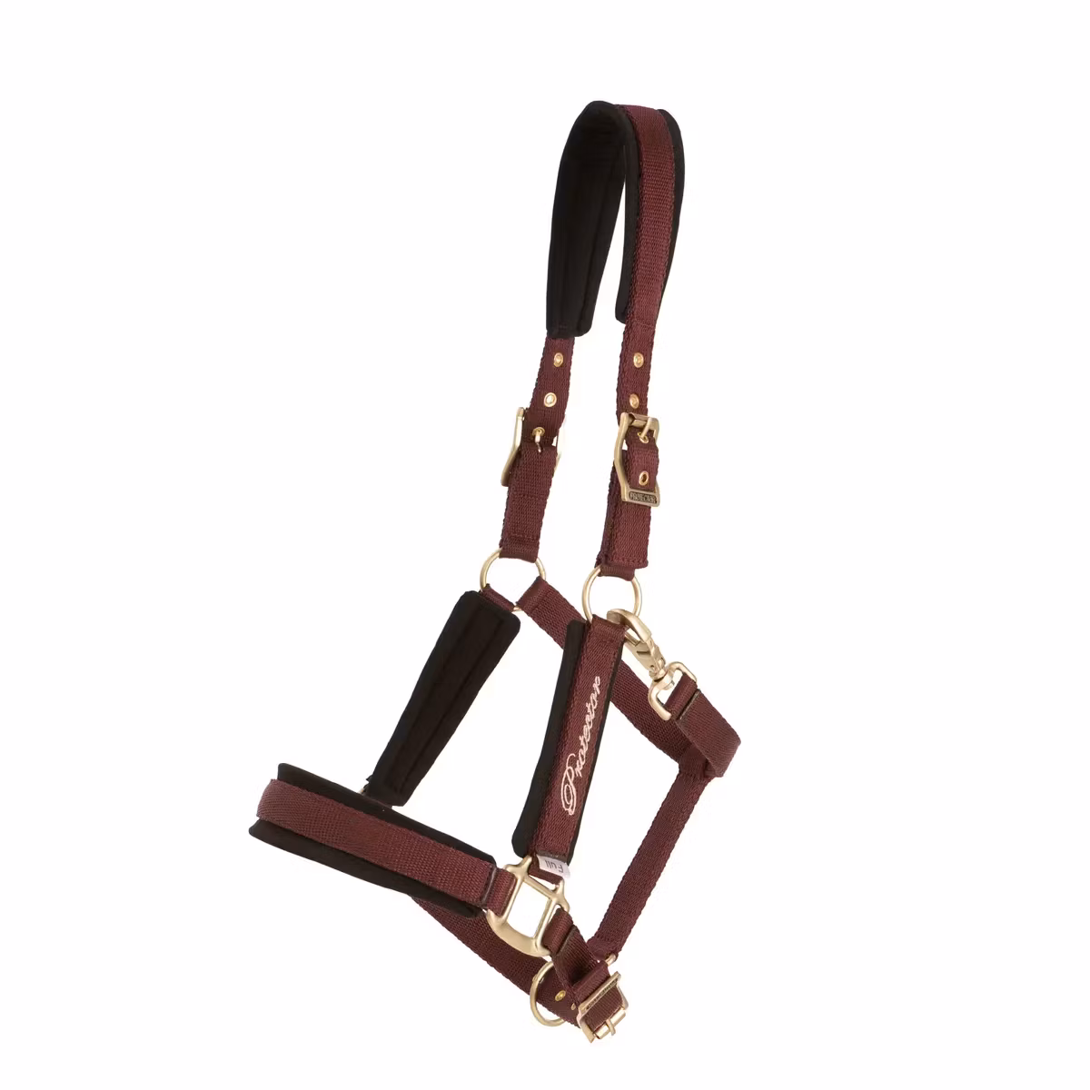 Tillverkad i mjuk polypropylene i klassiska  färger. Nylonfodrad nos, sidostycke och nackstycke. Ställbar i både nacke och nos. Borstade guldfärgade spännen. En lätt grimma som är behaglig för hästen att bära. Storlek: Ponny, cob, full,  x-full