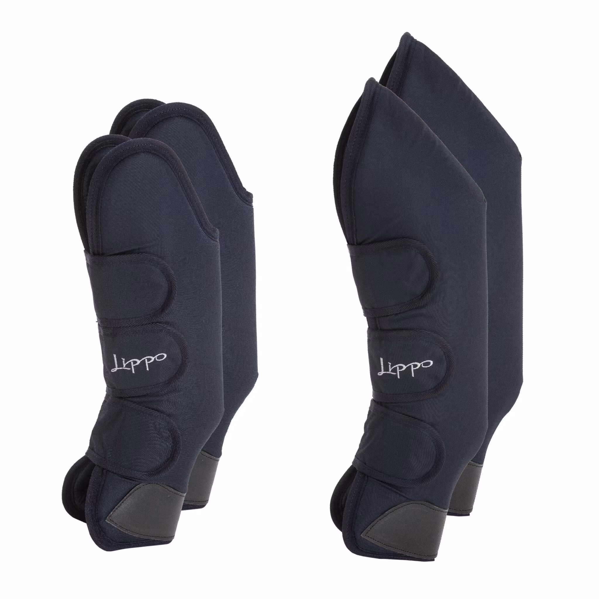 Mycket fina, höga transportskydd av kraftig nylon med förstärkning vid hoven. Kardborreknäppning. 4st/förpackning. Marinblå 600D.