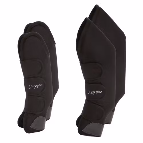 Mycket fina, höga transportskydd av kraftig nylon med förstärkning vid hoven från populära Lippo.Kardborreknäppning.4st/förpackning.Finns i 600D marin & 120
