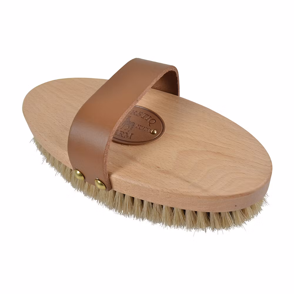 Ryktborste borst av tagel och en fast rem i läder. Borstlängd 2 cm. Två storlekar.