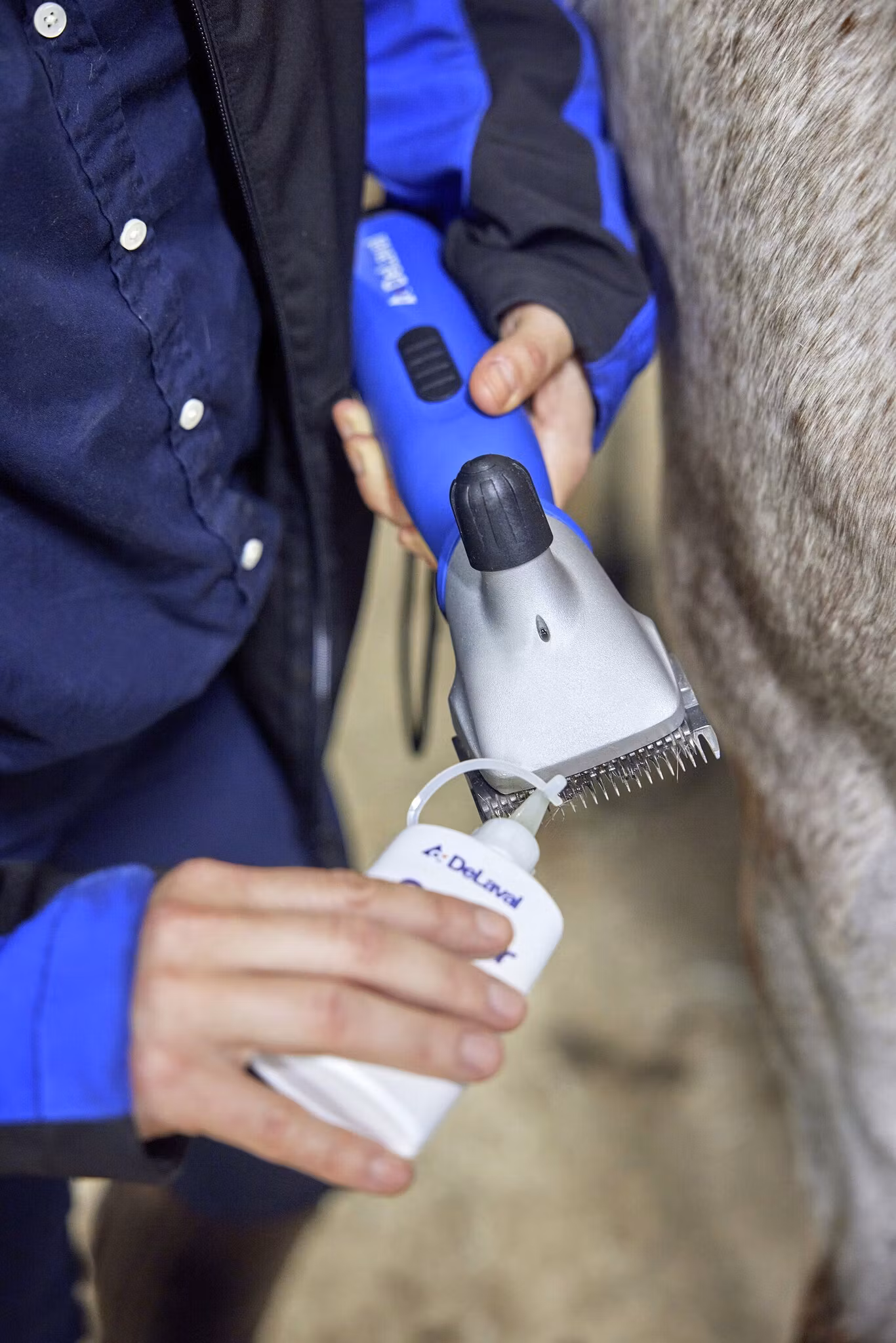DeLaval klipperolja förlänger skärpan på saxskären och håller smuts borta. För att spara skärens livslängd och öka effektiviteten - använd endast denna olja. Speciellt anpassad för DeLavals klippmaskiner. Smörj saxskären med intervall om 10 - 15 minuter för bästa livslängd och ekonomi.