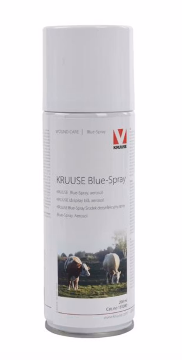 Blue-spray används för desinficering av bit- och rivsår hos grisar, kor och hästar. Utmärkt vid kastrering av smågrisar. Säljes i aerosol om 200 ml.