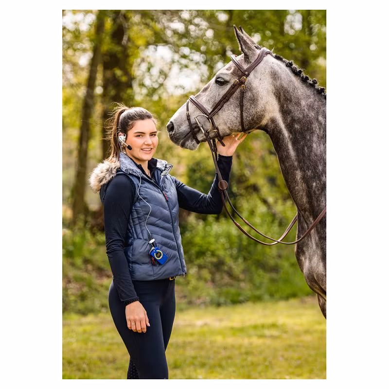 WHIS® Competition är väldigt lätt att använda: du behöver bara slå på enheten. Räckvidden för WHIS® Competition garanteras i praktiken upp till 100 meter, vilket är mer än tillräckligt för en dressyrarena. Den upplysta displayen har en unik design. Den visar batteristatus, anslutning och volym, vilket är ganska användbart om du vill veta vad du har att göra med. WHIS® Competition kommer med ett uppladdningsbart batteri med 10 timmars varaktighet, laddare och en global kontakt.