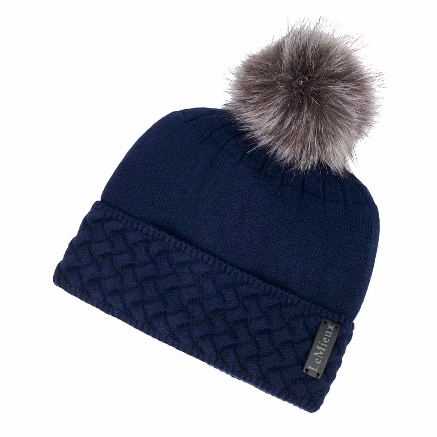 Håll dig varm i kallt väder med denna snygga, stickade mössa från LeMieux.