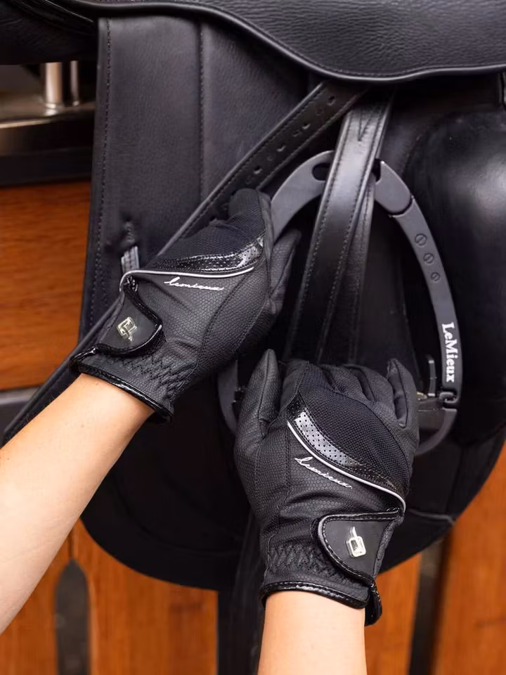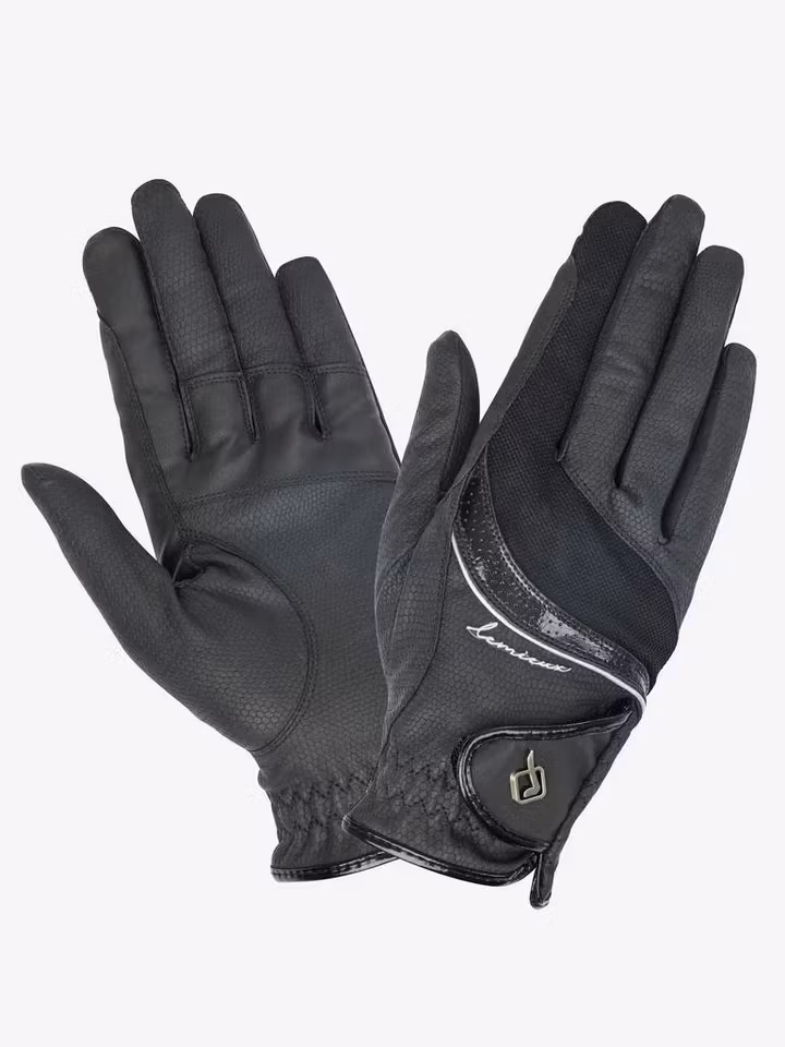 Handskarna är vackra och bekväma. De är tillverkade av syntetiskt läder med en halkfri stretchpanel för bättre grepp om tyglarna.
