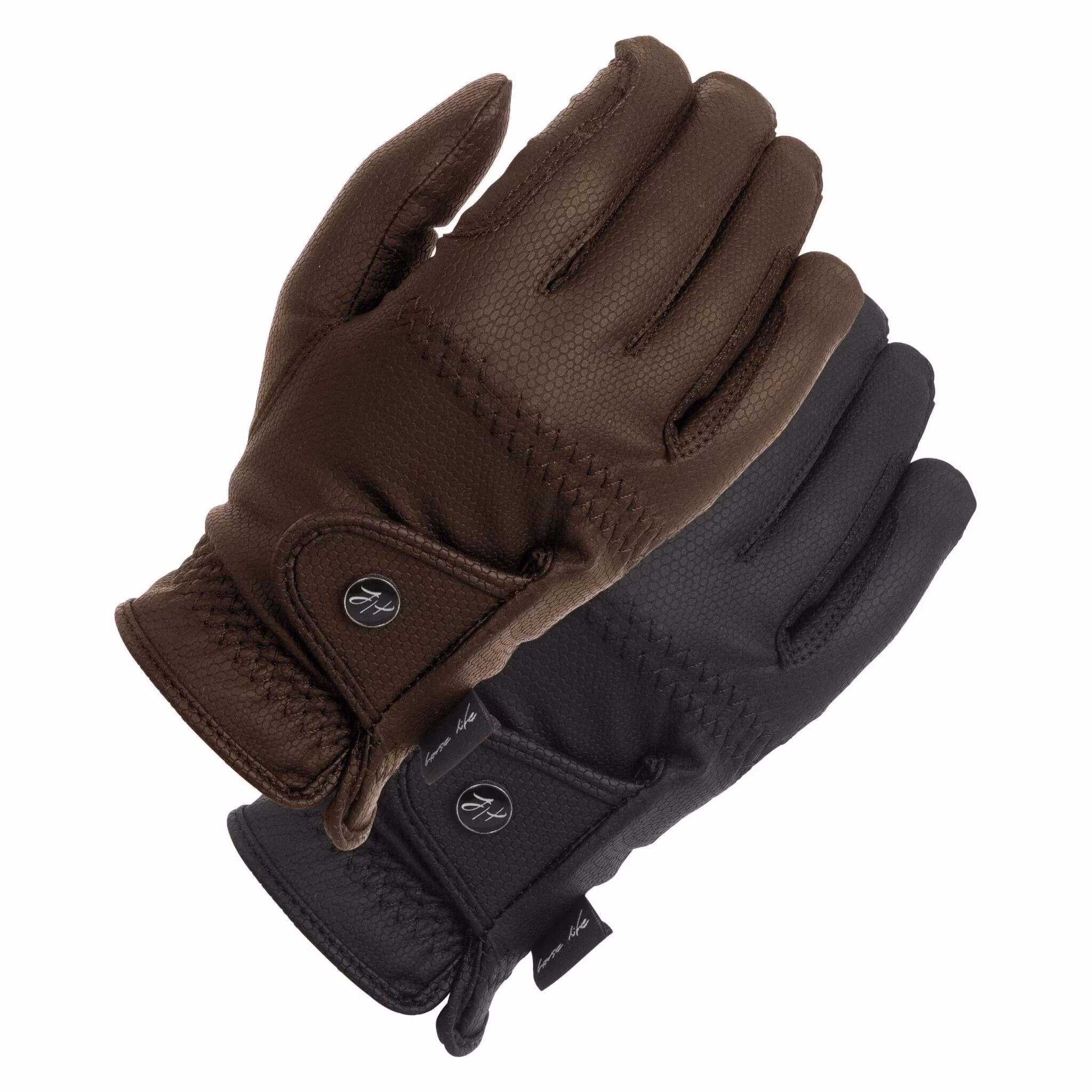 Ridhandskar i stretchigt syntetläder med andasfunktion. Värmade Thinsulate-foder på insidan. Mycket god passform. Starkt syntetmaterial som ger ett bra tygel-grepp. Förstärkningar på särskilt utsatta ställen. Rejäl kardborreknäppning. Dekorativ Horse Life metall-logo och vävd Horse Life etikett.
