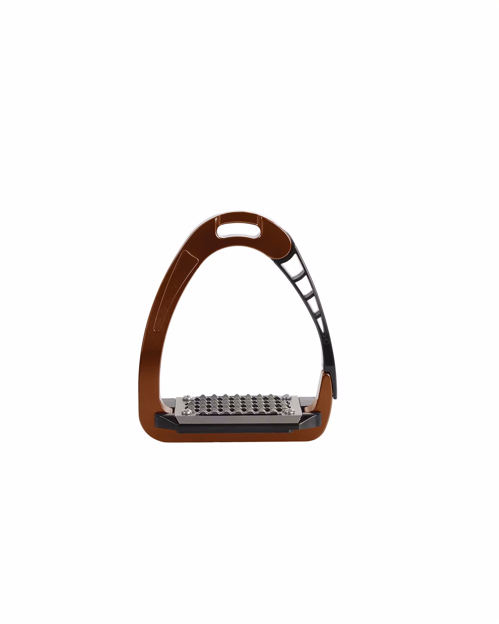 Säkerhetsstigbygel Arena från Acavallo i färgen Brun. Acavallo Arena Säkerhetsstigbygel är en mycket säker stigbygel som öppnar sig i nederkant. Bågen är gjord i aluminium medans den öppnande armen är gjord i ett speciellt polyamidmaterial. Stigbygeln har en en bred fotplatta och är tillverkad i rostfritt stål med piggar som ger ett bra grep.