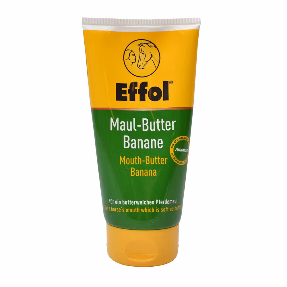 Mjukgörande munsalva med god banansmak. Framtagen i samarbete med veterinärer och ryttare. Kan bidra till att hästen lättare accepterar bettet. Minskar risken för munsår och skav genom sin mjukgörande och friktionsfria effekt.Stimulerar hästen till att tugga på bettet. Idealiskt för hästar som har känslig mun och tendens till sprucken hud. Effol Mouth Butter skyddar känsliga områden och vårdar känslig hud med högkvalitativa vårdande ämnen såsom allantoin, zinkoxid. 150ml