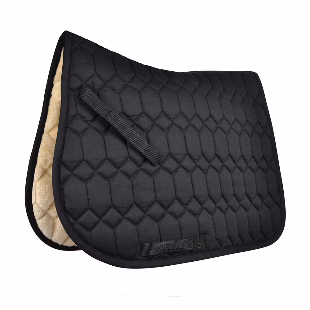 Schabrak med mysig insida i syntetiskt fårskinn. Perfekt under fällningssäsongen, och till känsliga hästar som lätt får skav. Exatron-mönster, Hansbo Sport logga vid sadelgjordsfästet och vid manken. Perfekt för egen brodyr. Svart, storlek full.