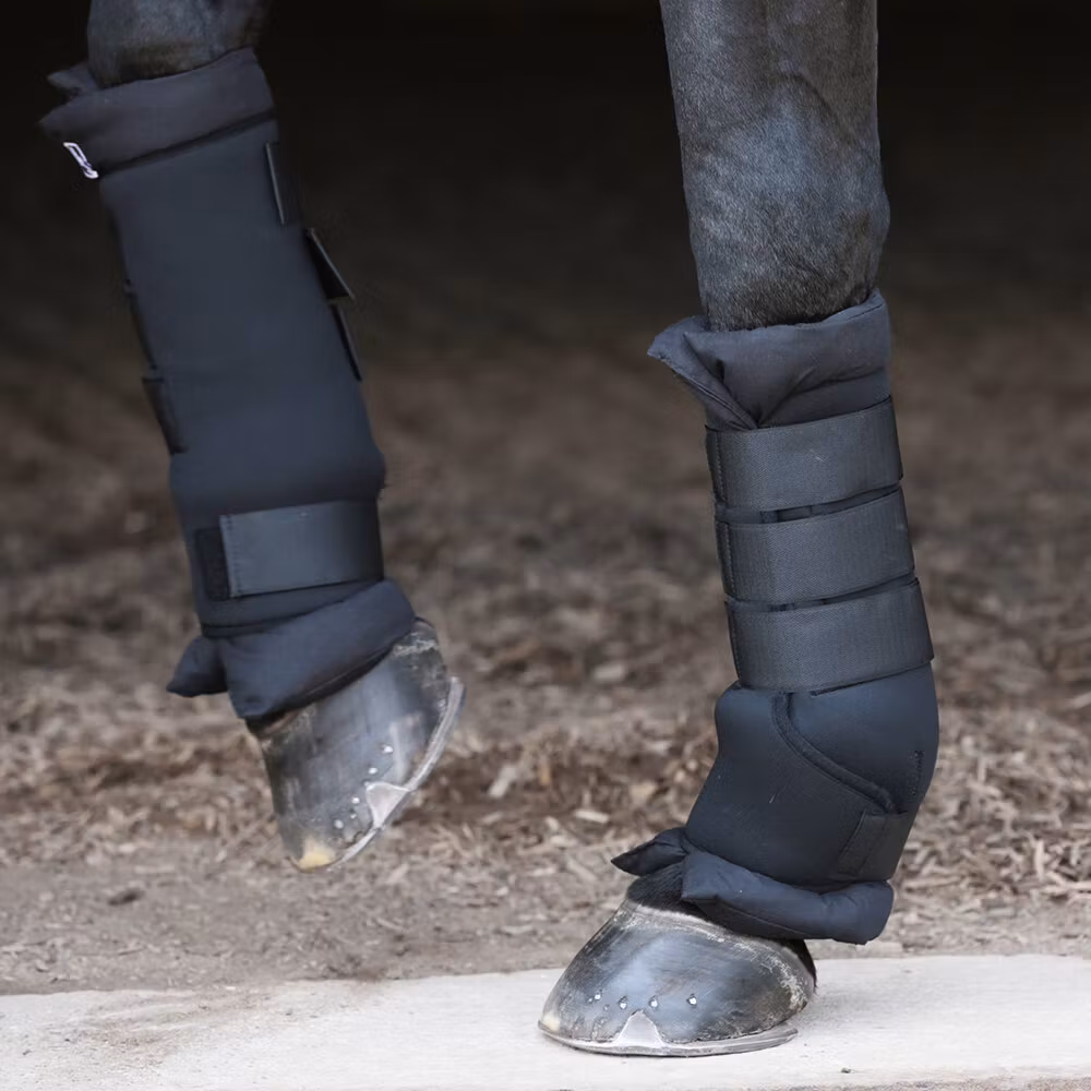 Benskydd från Hansbo Sport som fungerar både som stall- och transportskydd. Skydden är enkla att ta på och av tack vare kraftig kardborreknäppning. Perfekta som