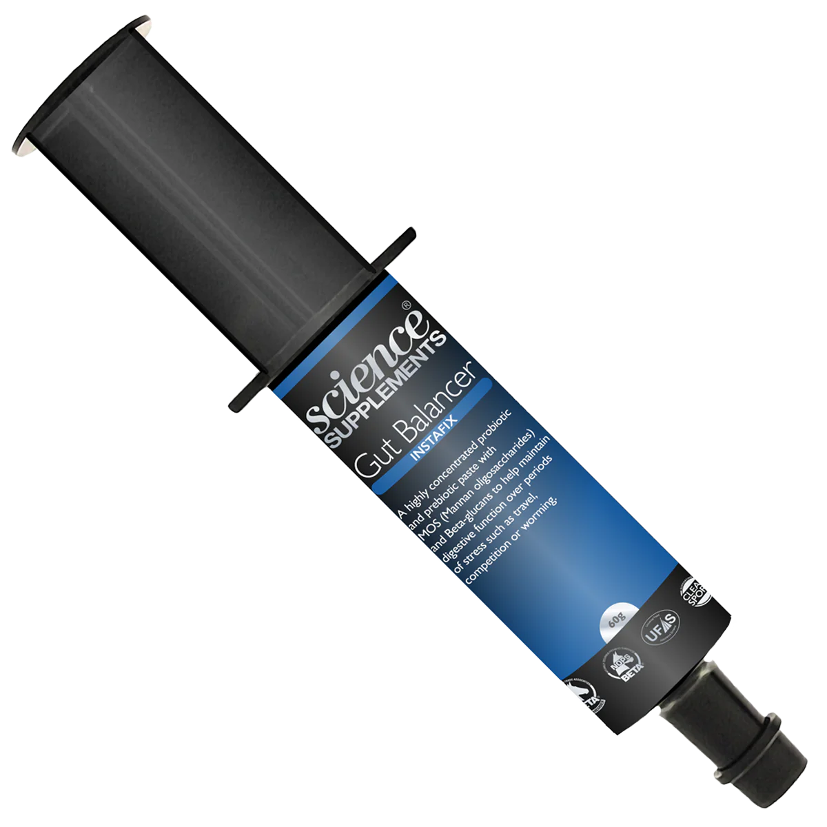 Gut Balancer INSTAFIX™ är en högkoncentrerad pre- och probiotisk pasta som verkar snabbt för att återställa hästens normala tarmfunktion. Används vid stress eller förändring, inklusive resor, avmaskning, vaccination, hård träning, foderbyte, byte av grovfoder, vårgräs, tävling och antibiotikabehandling. Lämplig för föl samt vuxna hästar och ponnier.